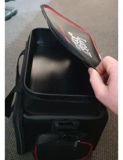 The top compartment is open to store all fishing accessoires. it is also detachable and can be used as separate bag.