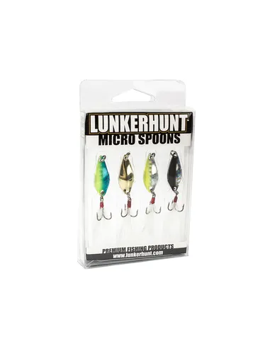 Designed using high quality components, these micro spoons feature a natural quality finish and feathered hook that mimics baitfish. They are heavy enough for long casts yet light enough to generate a subtle high flutter action. Lunkerhunt Micro Spoons come four to a pack. A great value and must have for every tackle box.