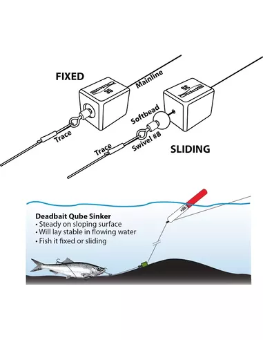 De Spro Dead Bait Float Cube Sinkers zijn perfect voor het vissen met doodaas, dankzij de vierkante vorm blijven deze gewichtjes altijd rotsvast op de bodem liggen. Daarnaast zijn deze loodjes voorzien van een camouflage coating. De Spro Dead Bait Float Cube Sinkers bieden de mogelijkheid om met een semi-vast of met een schuivend systeem te vissen.