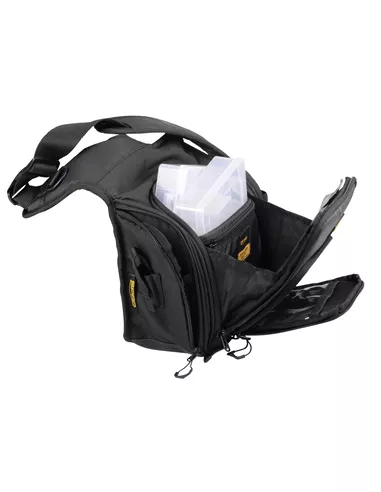 Een SPRO-klassieker. De shoulder bag is comfortabel, praktisch, compact én gebruiksvriendelijk. Dankzij het ontwerp kan de tas gemakkelijk van voren naar achteren gedraaid worden. Inclusief 2 kleinere tackleboxen en een grote foamplaat in het voorste compartiment voor het opbergen van pluggen, jigkoppen en geprepareerde softbaits. Op functionele plaatsen zijn D-ringen en end-tackle-compartimenten gepositioneerd.
